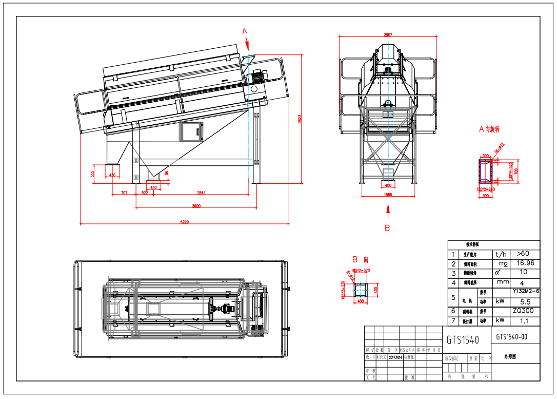 1該篩機由上半部、下半部、檢修跑道等組成。